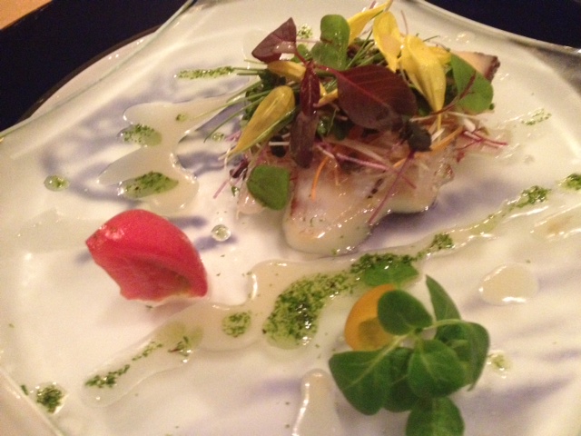 なにかの魚のカルパッチョ。さっぱりしていて美味しかったです。