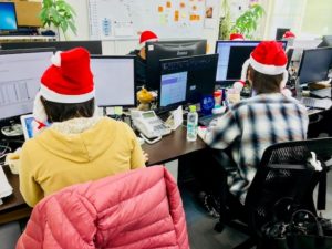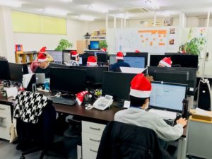 Merry Christmasー★当日! 公開日 : 2018年12月25日 / 更新日 : 2021年5月12日 社員ブログ クリスマス当日朝9時、事務所に異変が… 何やらモニターの上から赤いトンガリがいくつも(≧◇≦) 中にはおさげの女の子(!?おじさ…??)もいます でも顔はいたって真剣、仕事は真面目こなしています お客様によりよい製品をお届けできるよう、心はいつだってサンタクロースでいたいものです そしてお昼時にはささやかなプレゼント♪美味しく頂きました みなさまも素敵なクリスマスを★ きなこ 「モニター2号」 「2018年忘年会」