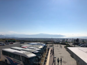 駿河湾沼津SAで一休みです。伊豆半島もはっきり見えます。