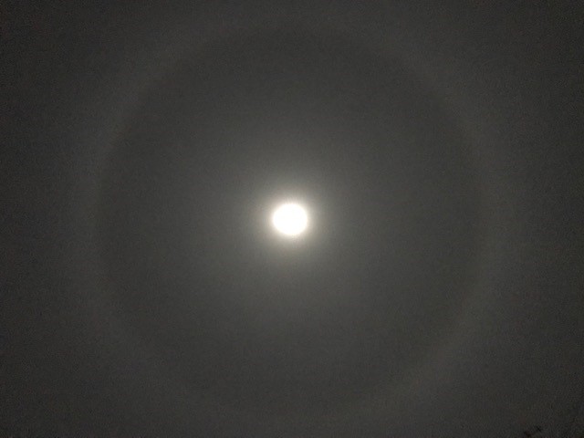 よ~く見てみると月のまわりに大きな光の輪ができているではありませんか!!