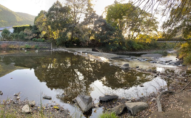 目の前には緩やかな川が流れています。