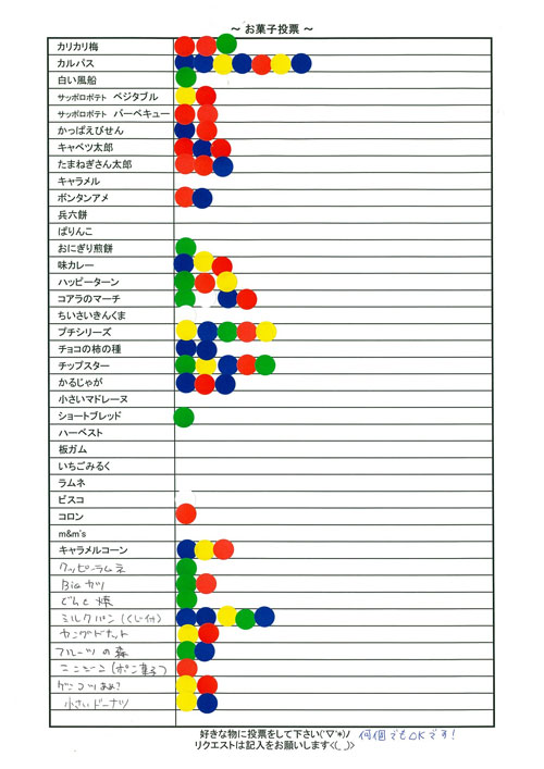 一押しのお菓子がたくさん票をとれたり、逆にとれなかったり・・・